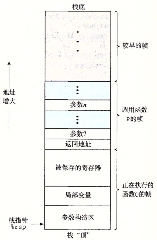 . 将四字压入栈pushq S . 将四字弹出栈popq D%rsp 是栈指针 %rax是返回值